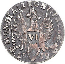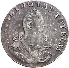 Los-Nummer: Auktion 51 - 3714 Ausländische Münzen und Medaillen Russland Elisabeth I. Petrowna 1741-1761, 6 Gröscher 1759, Königsberg. Russische Besetzung. Diakov 640 , Olding 454 a. Fast sehr schön Schätzpreis: 75,- Zuschlag: 70,- |
