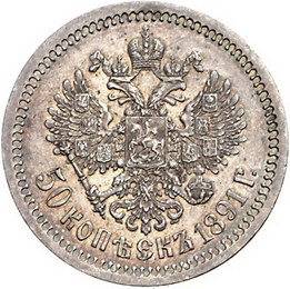 Los-Nummer: Auktion 51 - 3838 Ausländische Münzen und Medaillen Russland Alexander III. 1881-1894, 50 Kopeken 1891, St. Petersburg. Harris 420, Bitkin 84. Schöne Patina. Vorzüglich + Schätzpreis: 175,- Zuschlag: 2900,- |