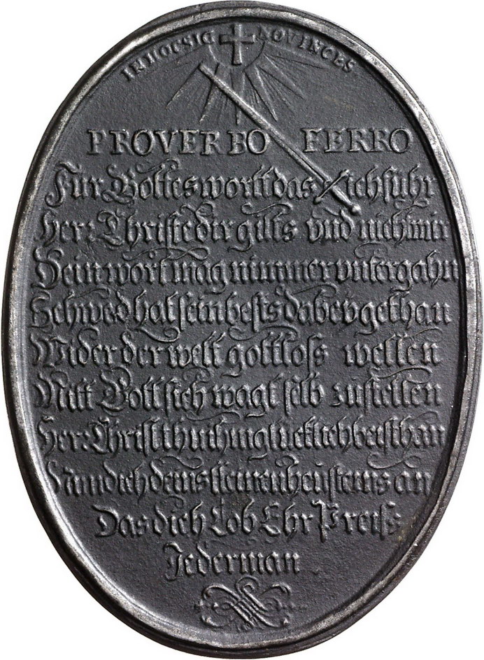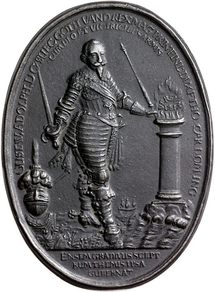 Los-Nummer: Auktion 51 - 3929 Ausländische Münzen und Medaillen Schweden Gustav II. Adolf 1611-1632, Hochovale Eisengussmedaille o.J. nach einer Arbeit von Paul Walter von 1632. Auf seine Siege in Deutschland 1630-1632. Stehender König in voller Rüstung mit Schwert und Zepter am Ufer einer Meereslandschaft neben einer Säule, auf der in Flammen VERBVM DEI steht / Elf Zeilen Schrift. Hildebrand zu I. S. 128. 97 x 72 mm. Guss des späten 18. Jahrhunderts. Vorzüglich Schätzpreis: 175,- Zuschlag: 160,- |