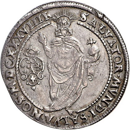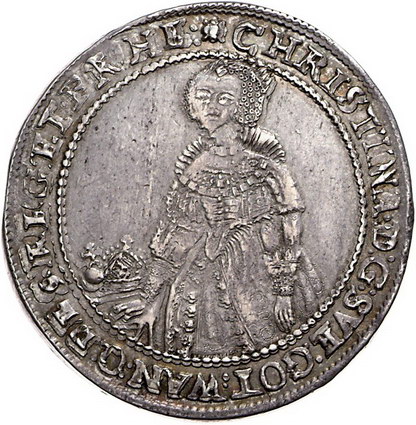 Los-Nummer: Auktion 51 - 3930 Ausländische Münzen und Medaillen Schweden Christina 1632-1654, Taler 1639, Stockholm. Hüftbild halblinks neben Tisch mit Krönungsinsignien / Stehender Christus als Salvator Mundi. Jahreszahl als MDCXXXVIIII geschrieben. S.M. 10 a, Davenport 4523. Sehr schön / fast vorzüglich Schätzpreis: 1000,- Zuschlag: 900,- |