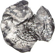 Los-Nummer: Auktion 51 - 3995 Ausländische Münzen und Medaillen Schweiz-Zürich, herzogliche Münzstätte Ernst II. 1015-1030, Pfennig, Fragment. 0,63 g. Kirche / Kreuz. Dannenberg - zu 997, Hürlimann 19 a. Sehr selten. Starke Ausbrüche, gering erhalten - schön Schätzpreis: 125,- Zuschlag: unverkauft |