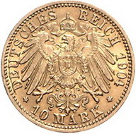 Los-Nummer: Auktion 51 - 2576 Münzen des Deutschen Kaiserreichs Baden Friedrich I. 1856-1907, 10 Mark 1904 G. Jaeger 190. GOLD. Sehr schön - vorzüglich Schätzpreis: 200,- Zuschlag: unverkauft |