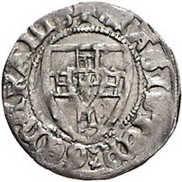 Los-Nummer: Auktion 51 - 725 Altdeutsche Münzen und Medaillen Deutscher Orden Hermann Gans 1413-1414, Schilling, Danzig. +MAGISTER GENERALIS Hochmeisterschild / +MONETA DNORVM PRVC Ordensschild, darüber D. Neumann 13, Slg. Marienburg 386, Voßberg 632. Äußerst selten. Sehr schön Schätzpreis: 1000,- Zuschlag: 2400,- |