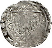 Los-Nummer: Auktion 51 - 48 Altdeutsche Münzen und Medaillen Arnsberg, Grafschaft Wilhelm 1319-1338, Pfennig, Eversberg. 1,03 g. Graf von vorn mit Schwert und Lilienzepter / Adlerschild auf gegittertem Grund. Berghaus 18, Grote 8/9, Weingärtner 119, Gans 22. Prägeschwäche, schön - sehr schön Schätzpreis: 100,- Zuschlag: 80,- |