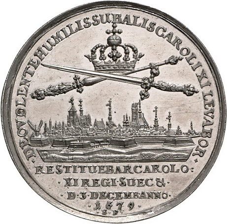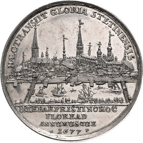 Los-Nummer: Auktion 51 - 372 Altdeutsche Münzen und Medaillen Brandenburg-Preußen Friedrich Wilhelm 1640-1688, Medaille 1679, von Engelhart. Auf die Übergabe der Stadt Stettin von Brandenburg an Schweden. Stadtansicht von Stettin / Krone, Zepter und Schwert über Stadtansicht. Brockmann -, North -, Slg. Henckel - , Slg. Pogge vergl. 1240, Hildebrand 75, Slg. Bratring -, Slg. Waschersleben 99. 47 mm, 30,73 g. Äußerst selten. Prachtexemplar. Fast Stempelglanz Schätzpreis: 5000,- Zuschlag: 5250,- |