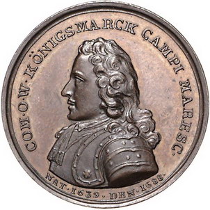 Los-Nummer: Auktion 51 - 713 Altdeutsche Münzen und Medaillen Bremen und Verden Personenmedaillen, Bronzemedaille o.J. (1807), von Enhörning. Auf den Statthalter Johann Christian von Königsmarck und die Einnahme von Bremen-Verden und Prag. Brustbild nach links / Zwei sich gegenüber stehende Rüstungen mit Helmen und Speeren und den Wappen von Bremen-Verden und Prag. Hyckert 5. 31 mm. Dazu Bronzemedaille o.J. (1845). Auf seinen jüngeren Bruder Otto Wilhelm von Königsmarck, Generalgouverneur von Pommern. 31 mm. 2 Stück. Vorzüglich Schätzpreis: 150,- Zuschlag: 160,- |