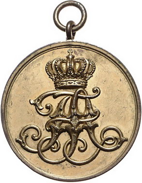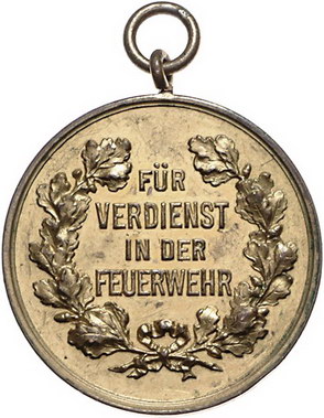 Los-Nummer: Auktion 51 - 1325 Altdeutsche Münzen und Medaillen Oldenburg Friedrich August 1900-1918, Tragbare Verdienstmedaille (Goldbronze) o.J. (1911-18), Verliehen für Verdienste in der Feuerwehr. Monogramm / Vier Zeilen Schrift in Eichenkranz. OEK 1555, Beyreiss 21. 30 mm. Vorzüglich Schätzpreis: 125,- Zuschlag: 160,- |