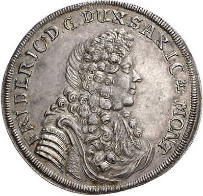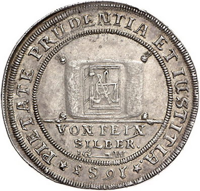 Los-Nummer: Auktion 51 - 1651 Altdeutsche Münzen und Medaillen Sachsen-Gotha-Altenburg Friedrich I. 1675-1691, Feinsilber Taler 1683 nach zinnaischem Fuß, Gotha. Münzmeister J. G. Wichmannshausen. Geharnischtes Brustbild mit langer Allongeperücke nach rechts / Auf einem Kissen liegendes Buch mit Waage und Schwert. Steguweit 54, Schnee 457, Davenport 7464 , Slg. Koch 2166 (dieses Exemplar). Von größter Seltenheit. Sehr schön - vorzüglich Schätzpreis: 9000,- Zuschlag: 7200,- |