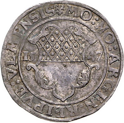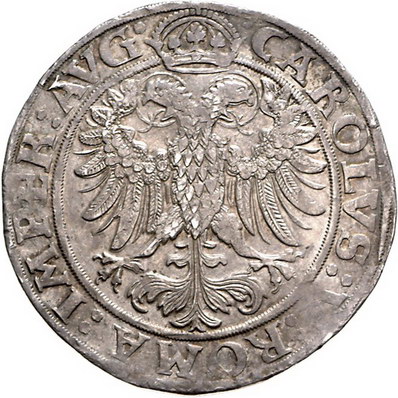 Los-Nummer: Auktion 51 - 1849 Altdeutsche Münzen und Medaillen Ulm, Stadt Taler 1547. Münzmeister B. Hundertpfund. Stadtschild teilt Jahreszahl / Doppeladler. Nau 50 a, Davenport 9926 , Binder 38. Schöne Patina. Vorzüglich Schätzpreis: 2500,- Zuschlag: 2000,- |