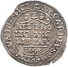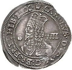 Los-Nummer: Auktion 51 - 3091 Ausländische Münzen und Medaillen Großbritannien Charles I. 1625-1649, Groat 1646, Bridgnorth-on-Severn. Seaby 3042. Schöne Patina. Vorzüglich + Schätzpreis: 1000,- Zuschlag: 1350,- |