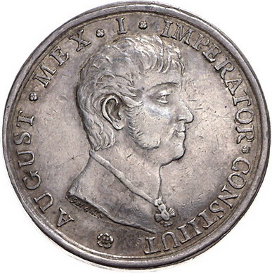 Los-Nummer: Auktion 51 - 3432 Ausländische Münzen und Medaillen Mexiko Augustine I. Iturbide 1822-1823, Medaille 1822. Auf die Proklamation in Veracruz. Brustbild nach rechts / Verziertes Stadtwappen. Slg. Fonrobert -. Sehr schön - vorzüglich Schätzpreis: 400,- Zuschlag: unverkauft |