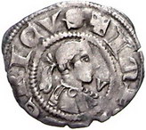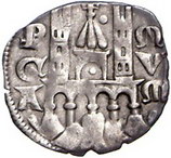 Los-Nummer: Auktion 51 - 3171 Ausländische Münzen und Medaillen Italien-Bergamo, Stadt Denaro imperiale scodellato (13. Jahrhundert) mit Namen Friedrichs II. von Hohenstaufen. IMP FEDERICVS Kaiserliches Brustbild rechts / Stadtburg. CNI 4.37.63 ff, Biaggi 354. 0,88 g. Sehr schön Schätzpreis: 150,- Zuschlag: unverkauft |