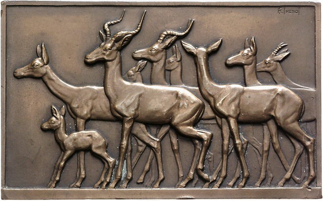Los-Nummer: Auktion 51 - 2476 Medaillen Tierdarstellungen Allgemein Bronzemedaillen und -plaketten mit Antilopen-, Büffel-, Hund- und Kleintierdarstellungen, u.a. Vögel, Geflügel, Kaninchen, Frösche, Eidechsen, Insekten sowie ein Medaille auf die Saujagd. Zu den meisten Medaillen Karteikarten mit Beschreibungen und Zitaten. 15 Stück. Sehr schön, vorzüglich Schätzpreis: 300,- Zuschlag: unverkauft |