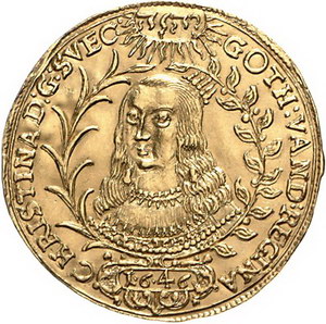 Los-Nummer: Auktion 51 - 777 Altdeutsche Münzen und Medaillen Erfurt-Unter schwedischer Besetzung Christina 1632-1648, Doppeldukat 1646. Unter strahlendem Gottesnamen Brustbild der Königin zwischen Palm- und Lorbeerzweig, unten Jahreszahl in Kartusche / Gekröntes, verziertes Wappen. S.B. 34 a, Friedberg 928. GOLD. Kleine Randverprägung, vorzüglich + Schätzpreis: 9000,- Zuschlag: 8750,- |