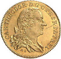 Los-Nummer: Auktion 51 - 1368 Altdeutsche Münzen und Medaillen Pfalz-Kurlinie Karl Theodor 1742-1799, Rheingolddukat 1764, Mannheim. Drapiertes Brustbild mit im Nacken zusammen gebundenen Haaren nach rechts, darunter Stempelschneiderinitialen AS des Anton Schäffer / Seitenverkehrte Ansicht Mannheims vom Rhein her, am gegenüber liegendem Ufer Goldwäscher, links ein Bäumchen. Slg. Noss 369, Slg. Memmesheimer 2488, Friedberg 2037, Haas 63 a. #063, 63 a} GOLD. Minimal gewellt, fast Stempelglanz Schätzpreis: 2000,- Zuschlag: 1600,- |