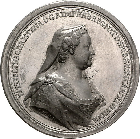 Los-Nummer: Auktion 51 - 648 Altdeutsche Münzen und Medaillen Braunschweig-Wolfenbüttel Elisabeth Christine *1691, +1750, Zinnmedaille o.J., von Matthias Donner. Brustbild nach rechts / Hand aus Wolke führt ein sich nach rechts aufbäumendes Pferd. Brockmann 436 a, Slg. Montenuovo -. 61 mm. Prachtexemplar. Stempelglanz Schätzpreis: 225,- Zuschlag: 300,- |