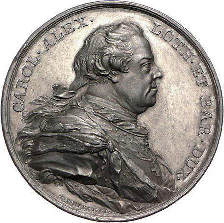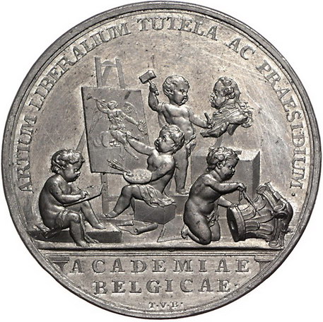 Los-Nummer: Auktion 51 - 742 Altdeutsche Münzen und Medaillen Deutscher Orden Karl Alexander von Lothringen 1761-1780, Zinnmedaille 1778, von Theodor van Berckel. Preismedaille der Académie Royale des beaux-arts. Brustbild nach rechts / Vier Putten arbeiten an einem Bild der Fama, einer Büste Karl Alexanders und einem korinthischen Kapitell. Prokisch 297.4 , Dirks IV, 1815. 47 mm. Vorzüglich - Stempelglanz Schätzpreis: 175,- Zuschlag: 160,- |
