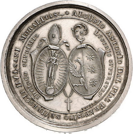 Los-Nummer: Auktion 51 - 2247 Haus Habsburg Bozen, Probstei Aloys Anton dal Paz, Medaille 1820, von Neuss. Auf seine Installation. Zwei Wappen unter Mitra und vor Krummstab / Schrift. Slg. Montenuovo 2748 (Br.), Forster -. 45 mm, 55,23 g. Äußerst selten. Vorzüglich Schätzpreis: 1500,- Zuschlag: 2100,- |