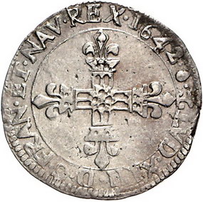 Los-Nummer: Auktion 51 - 2984 Ausländische Münzen und Medaillen Frankreich Ludwig XIII. 1610-1643, 1/4 Ecu 1642 Z, Grenoble. Gadoury 27. Auflage: 15876 Stück. Sehr schön Schätzpreis: 250,- Zuschlag: 520,- |