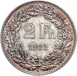 Los-Nummer: Auktion 51 - 3967 Ausländische Münzen und Medaillen Schweiz-Eidgenossenschaft 2 Franken 1911. Divo/Tobler 304, HMZ 2-1202 q. Polierte Platte. Fast Stempelglanz Schätzpreis: 400,- Zuschlag: unverkauft |