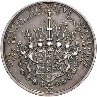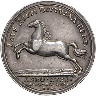 Los-Nummer: Auktion 51 - 646 Altdeutsche Münzen und Medaillen Braunschweig-Wolfenbüttel Ludwig Rudolph 1731-1735, Medaille 1731, von Werner. Auf das Jubelfest der Universität Helmstedt. Springendes Pferd nach links / Behelmtes Wappen. Brockmann 334 , Fiala 1564. 34 mm, 14,30 g. Sehr schön - vorzüglich Schätzpreis: 100,- Zuschlag: 110,- |