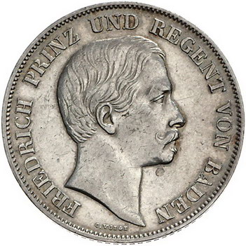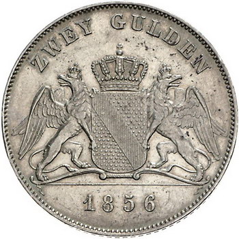 Los-Nummer: Auktion 51 - 85 Altdeutsche Münzen und Medaillen Baden-Durlach Friedrich I. 1852-1907, Doppelgulden 1856. Prinz und Regent. Jaeger 70, Thun 29, AKS 116, Kahnt 33. Sehr schön Schätzpreis: 250,- Zuschlag: 290,- |