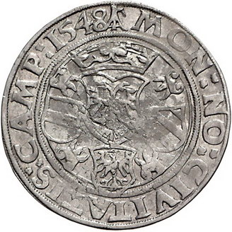 Los-Nummer: Auktion 51 - 959 Altdeutsche Münzen und Medaillen Kempten, Stadt 1/2 Taler 1548. Nau 147, Bernhart 198. Gereinigtes Fundstück. Sehr schön Schätzpreis: 500,- Zuschlag: unverkauft |