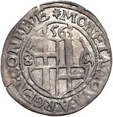 Los-Nummer: Auktion 51 - 1833 Altdeutsche Münzen und Medaillen Trier, Erzbistum Johann VI. von der Leyen 1556-1567, Albus 1563, Koblenz. v. Schrötter 17. Schön - sehr schön Schätzpreis: 100,- Zuschlag: 130,- |