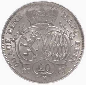 Los-Nummer: Auktion 51 - 1370 Altdeutsche Münzen und Medaillen Pfalz-Birkenfeld-Zweibrücken Christian IV. 1735-1775, 20 Kreuzer 1765. Büste nach rechts zwischen Palm- und Lorbeerzweig / Unter Fürstenkrone Wappen Pfalz und Bayern zwischen Zweigen über Kartusche mit Wertzahl. Schuler 99, Slg. Noss 456. In US Plastik-Holder PCGS MS 64. Prachtexemplar. Stempelglanz Schätzpreis: 300,- Zuschlag: 250,- |