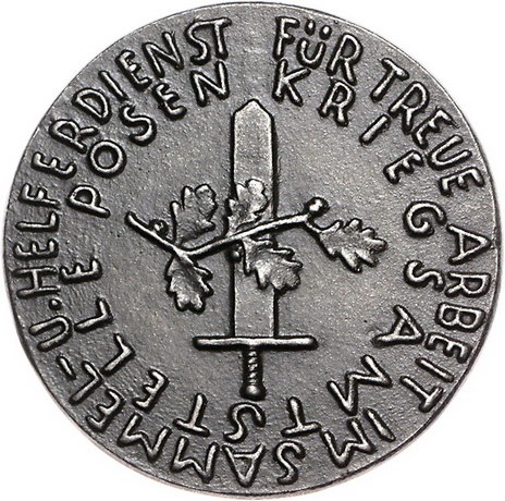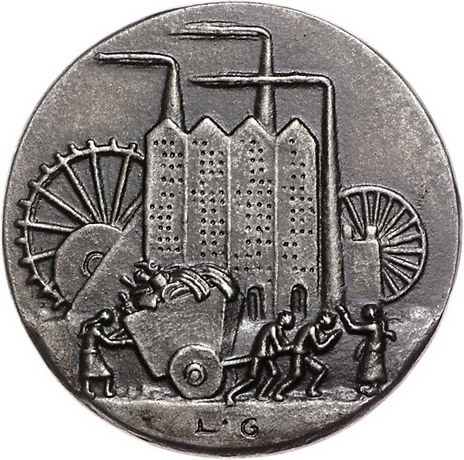 Los-Nummer: Auktion 51 - 2307 Medaillen Kunstmedaillen Gies, Ludwig Eisengussmedaille o.J. (1917?). Für treue Arbeit im Sammel- und Helferdienst der Kriegsamtstelle Posen. Menschen mit einer mit Ähren beladenen Karre vor Industrielandschaft / Eichenzweig und Schwert. Ernsting -, Steguweit (Medaillen 20. Jahrhundert) Seite 144 Nr. 18. 48 mm. Vorzüglich Schätzpreis: 250,- Zuschlag: 270,- |