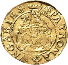 Los-Nummer: Auktion 51 - 3673 Ausländische Münzen und Medaillen Rumänien-Siebenbürgen Sigismund Báthory 1581-1602, Dukat 1586, Nagybanya. Stehender St. Ladislaus / Madonna mit Kind. Resch 19, Friedberg 295. #0297} GOLD. Prachtexemplar. Vorzüglich - Stempelglanz Schätzpreis: 1500,- Zuschlag: 1500,- |
