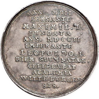 Los-Nummer: Auktion 51 - 1578 Altdeutsche Münzen und Medaillen Sachsen-Albertinische Linie Friedrich August I. 1694-1733, Medaille 1702, von Kittel. Auf die 200-Jahrfeier der Universität Wittenberg. Stadtansicht / Schrift. Slg. Merseburger 2713 , Daßdorf 1111, Tentzel Tf. 80/4, Laverrenz 81. 34 mm, 9,11 g. Schöne Patina. Vorzüglich Schätzpreis: 500,- Zuschlag: unverkauft |
