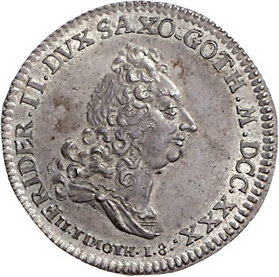 Los-Nummer: Auktion 51 - 1653 Altdeutsche Münzen und Medaillen Sachsen-Gotha-Altenburg Friedrich II. 1691-1732, 8 Groschen 1730. Auf das Konfessionsjubiläum. Steguweit 227, Slg. Merseburger 3191 (1/4 Taler) , Slg. Whiting 442. Vorzüglich + Schätzpreis: 250,- Zuschlag: 285,- |