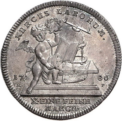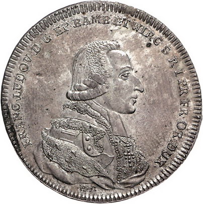 Los-Nummer: Auktion 51 - 1927 Altdeutsche Münzen und Medaillen Würzburg, Bistum Franz Ludwig von Erthal 1779-1795, Prämientaler 1786. Helmschrott 887, Davenport 2907. Schöne Patina. Fast Stempelglanz Schätzpreis: 750,- Zuschlag: unverkauft |