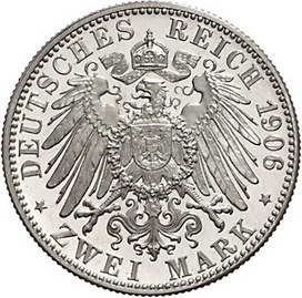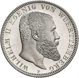 Los-Nummer: Auktion 51 - 2733 Münzen des Deutschen Kaiserreichs Württemberg Wilhelm II. 1891-1918, 2 Mark 1906 F. Jaeger 174. Polierte Platte Schätzpreis: 200,- Zuschlag: unverkauft |