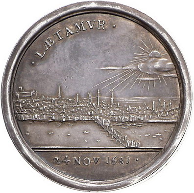 Los-Nummer: Auktion 51 - 3093 Ausländische Münzen und Medaillen Großbritannien Charles II. 1660-1685, Medaille 1681, von Bower. Auf die Freisprechung des Earls of Shaftesbury vom Hochverrat. Brustbild des Sir Anthony Ashley Cooper, 1st Earl of Shaftesbury (1621-1683) nach rechts / Stadtansicht von London mit dem Tower vom Ufer der Themse aus. Eimer 261, Francs 583, 259. 40,5 mm, 28,16 g. Schöne Patina. Kl. Randfehler, vorzüglich + Schätzpreis: 400,- Zuschlag: 430,- |