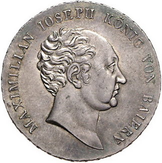Los-Nummer: Auktion 51 - 122 Altdeutsche Münzen und Medaillen Bayern Maximilian I. Joseph 1806-1825, 1/2 Schulpreistaler o.J. Jaeger 19, AKS 64, Kahnt 63. Schöne Patina. Vorzüglich + Schätzpreis: 350,- Zuschlag: unverkauft |