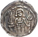Los-Nummer: Auktion 51 - 236 Altdeutsche Münzen und Medaillen Brandenburg-Preußen Albrecht III. 1283-1300, Pfennig, Spandau. 0,58 g. Markgraf mit Schwert und Lanze / Helm. Bahrfeldt 233, Dannenberg 84. Sehr schön + Schätzpreis: 75,- Zuschlag: 110,- |