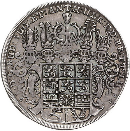Los-Nummer: Auktion 51 - 640 Altdeutsche Münzen und Medaillen Braunschweig-Wolfenbüttel Rudolf August und Anton Ulrich 1685-1704, Taler 1696 RB, Zellerfeld. Wilder Mann. Welter 2069, Davenport 6389. Winz. Randfehler, sehr schön Schätzpreis: 200,- Zuschlag: 180,- |