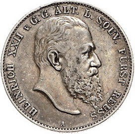 Los-Nummer: Auktion 51 - 2664 Münzen des Deutschen Kaiserreichs Reuss, ältere Linie Heinrich XXII. 1859-1902, 2 Mark 1901 A. Jaeger 118. Sehr schön Schätzpreis: 125,- Zuschlag: unverkauft |