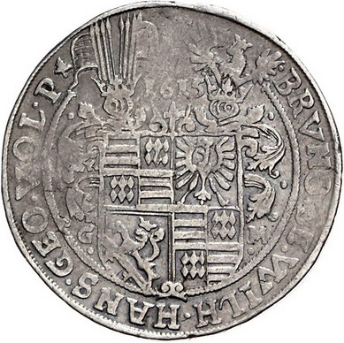 Los-Nummer: Auktion 51 - 1059 Altdeutsche Münzen und Medaillen Mansfeld-vorderortische Linie zu Bornstedt Bruno II., Wilhelm I., Johann Georg IV. und Volrad VI. 1605-1615, Taler 1615. Tornau 169, Davenport 6919. Sehr schön Schätzpreis: 175,- Zuschlag: 140,- |