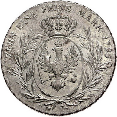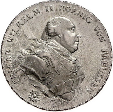 Los-Nummer: Auktion 51 - 488 Altdeutsche Münzen und Medaillen Brandenburg-Preußen Friedrich Wilhelm II. 1786-1797, Taler 1795, Berlin. Für Ansbach-Bayreuth. Brustbild mit im Nacken zusammen gebundenen Haaren und mit umgelegtem Ordensband nach rechts / Gekrönter Adlerschild zwischen Lorbeerzweigen. Jaeger 182, Davenport 2600. Minimal justiert, vorzüglich - Stempelglanz Schätzpreis: 500,- Zuschlag: unverkauft |