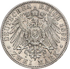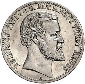 Los-Nummer: Auktion 51 - 2662 Münzen des Deutschen Kaiserreichs Reuss, ältere Linie Heinrich XXII. 1859-1902, 2 Mark 1892 A. Jaeger 117. Sehr schön - vorzüglich Schätzpreis: 350,- Zuschlag: unverkauft |