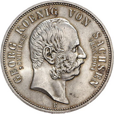 Los-Nummer: Auktion 51 - 2686 Münzen des Deutschen Kaiserreichs Sachsen Georg 1902-1904, 5 Mark 1904 E. Auf seinen Tod. Jaeger 133. Vorzüglich - Stempelglanz Schätzpreis: 150,- Zuschlag: unverkauft |