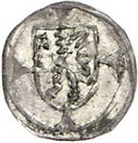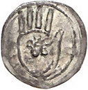 Los-Nummer: Auktion 51 - 1508 Altdeutsche Münzen und Medaillen Sachsen-Markgrafschaft Meißen Kurfürst Friedrich II. 1428-1464, Pfennig, Altenburg. Glatter Heller nach fränkischer Art. Löwenschild auf Gabelkreuz / Hand mit pleißnischer Rose. Krug 839 , Götz 7638. Vorzüglich - Stempelglanz Schätzpreis: 90,- Zuschlag: 160,- |