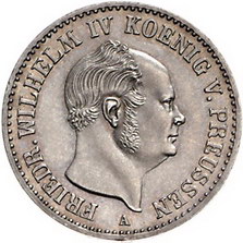 Los-Nummer: Auktion 51 - 550 Altdeutsche Münzen und Medaillen Brandenburg-Preußen Friedrich Wilhelm IV. 1840-1861, 1/6 Taler 1860 A. Jaeger 83, AKS 82. Fast Stempelglanz Schätzpreis: 400,- Zuschlag: 360,- |