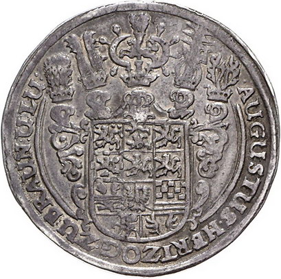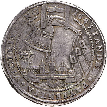 Los-Nummer: Auktion 51 - 634 Altdeutsche Münzen und Medaillen Braunschweig-Wolfenbüttel August der Jüngere 1635-1666, 7. Glockentaler 1643, Zellerfeld. Ohne Münzzeichen. Von drei Armen geläutete Glocke. Welter 816, Davenport 6375. Schöne Patina. Sehr schön Schätzpreis: 300,- Zuschlag: 280,- |