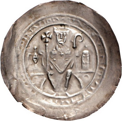 Los-Nummer: Auktion 51 - 910 Altdeutsche Münzen und Medaillen Hersfeld, Abtei Johann I. 1201-1213, Brakteat, Arnstadt. 0,58 g. Abt sitzt von vorn mit Kreuz- und Krummstab auf Mauerbogen, links Adler, rechts Turm, Trugschrift. Slg. Bonhoff 1303, Slg. Löbbecke 653, Berger -, Fd. Seega 250. Sehr schön + Schätzpreis: 600,- Zuschlag: unverkauft |