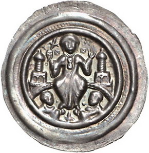 Los-Nummer: Auktion 51 - 1435 Altdeutsche Münzen und Medaillen Quedlinburg, Abtei Beatrix II. von Winzenburg 1138-1160, Brakteat. 0,83 g. Sitzende Äbtissin mit Lilie und segnender Hand auf Mauerbogen zwischen zwei Türmen, unten die Brustbilder von zwei betenden Nonnen. Mehl 67, Slg. Bonhoff 516, Fd. Freckleben 92, Berger 1409, Slg. Löbbecke 97. Schöne Patina. Vorzüglich Schätzpreis: 1250,- Zuschlag: unverkauft |