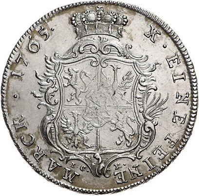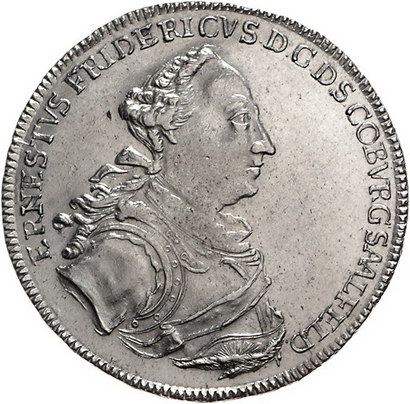 Los-Nummer: Auktion 51 - 1698 Altdeutsche Münzen und Medaillen Sachsen-Coburg-Saalfeld Ernst Friedrich 1764-1800, Taler 1765 ICK, Saalfeld. Geharnischtes Brustbild mit im Nacken gebundenen Haaren und umgelegtem Ordensband nach rechts / Verziertes vierfeldiges Wappen unter Fürstenhut. Grasser 529, Slg. Merseburger 3679, Schnee 613, Davenport 2751, Kozinowski/Otto/Ruß 887.1. Leicht justiert, vorzüglich Schätzpreis: 350,- Zuschlag: 380,- |